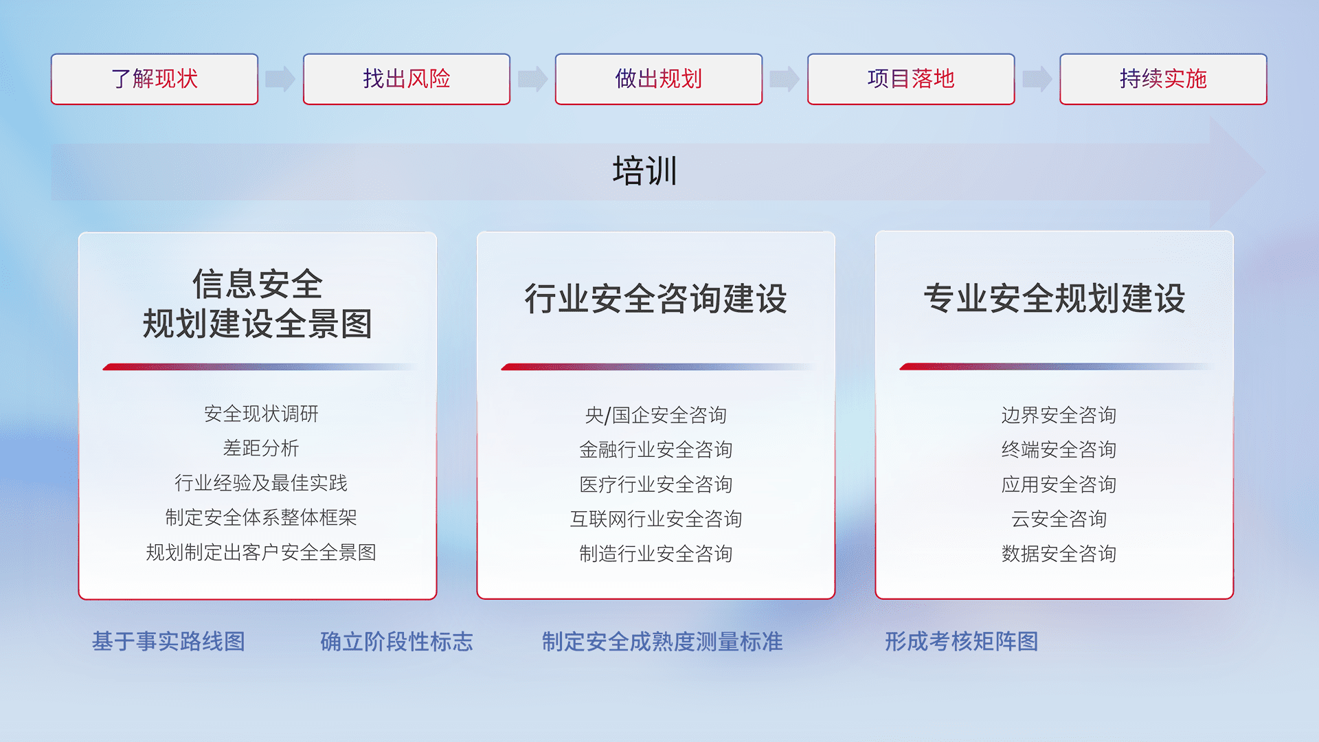 梳理客户信息安全现状调研、、、、差距分析结果,,结合行业先进经验及最佳实践,,,制订客户的信息安全管控体系总结架构,,,最终形成一个完整的客户信息安全规划与建设的全景图。。。