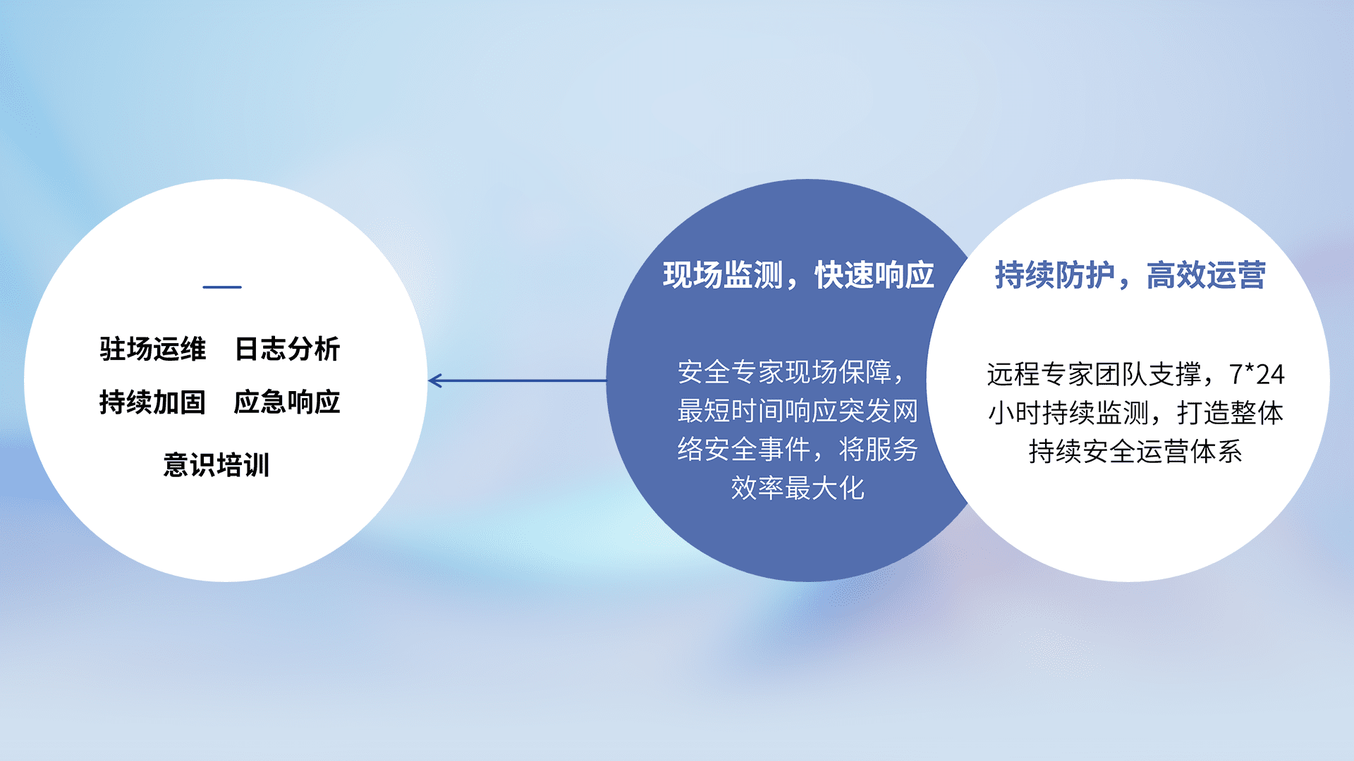 针对客户行业特性,,提供专属的一站式安全管理服务,,,,帮助客户全面感知网络空间威胁,,,通过安全专家的线上、、、线下防护支持,,,实现风险闭环,,,,将安全保障常态化,,,为客户打造常态化安全运维运营服务。。。